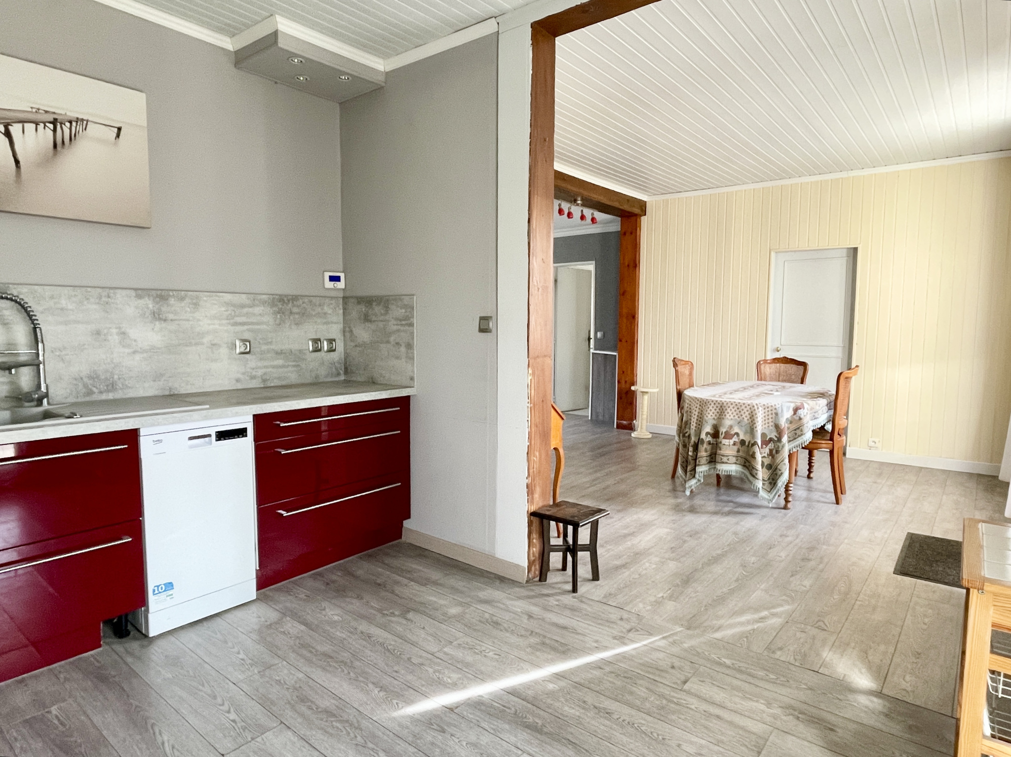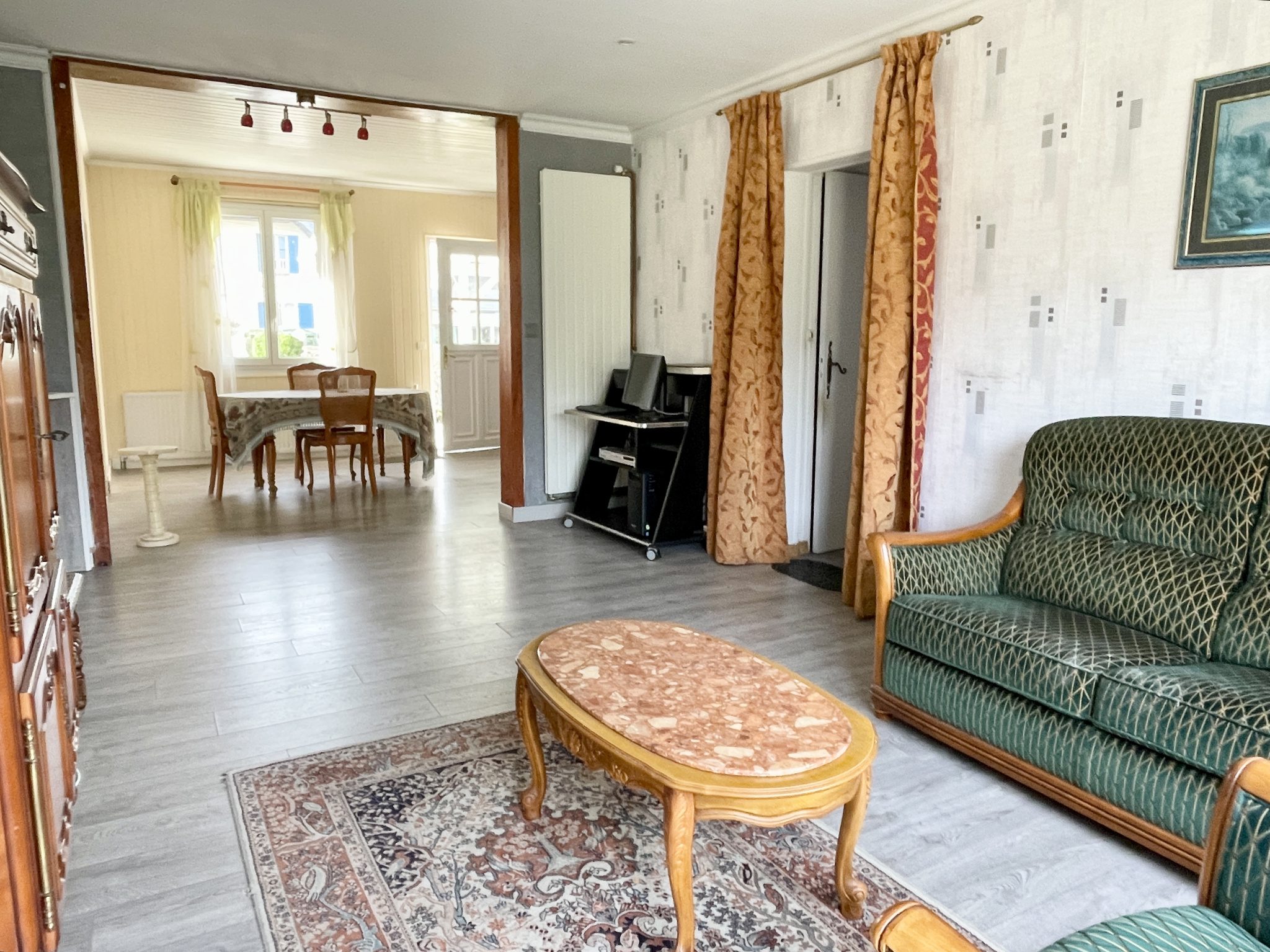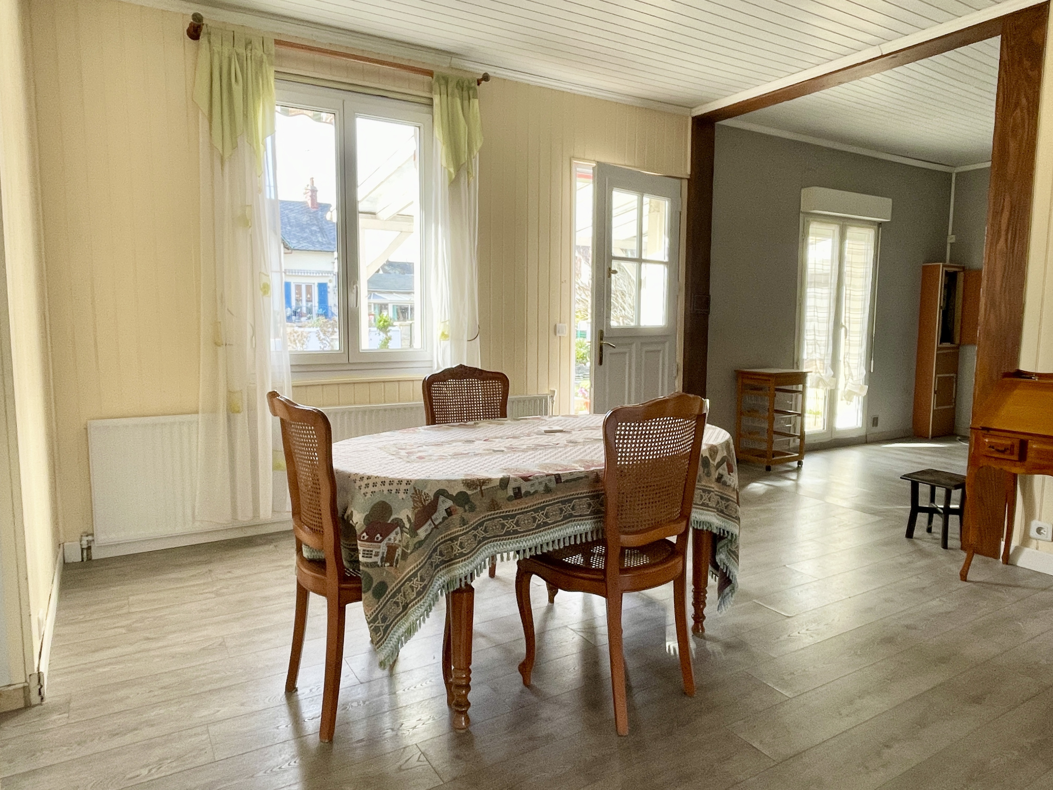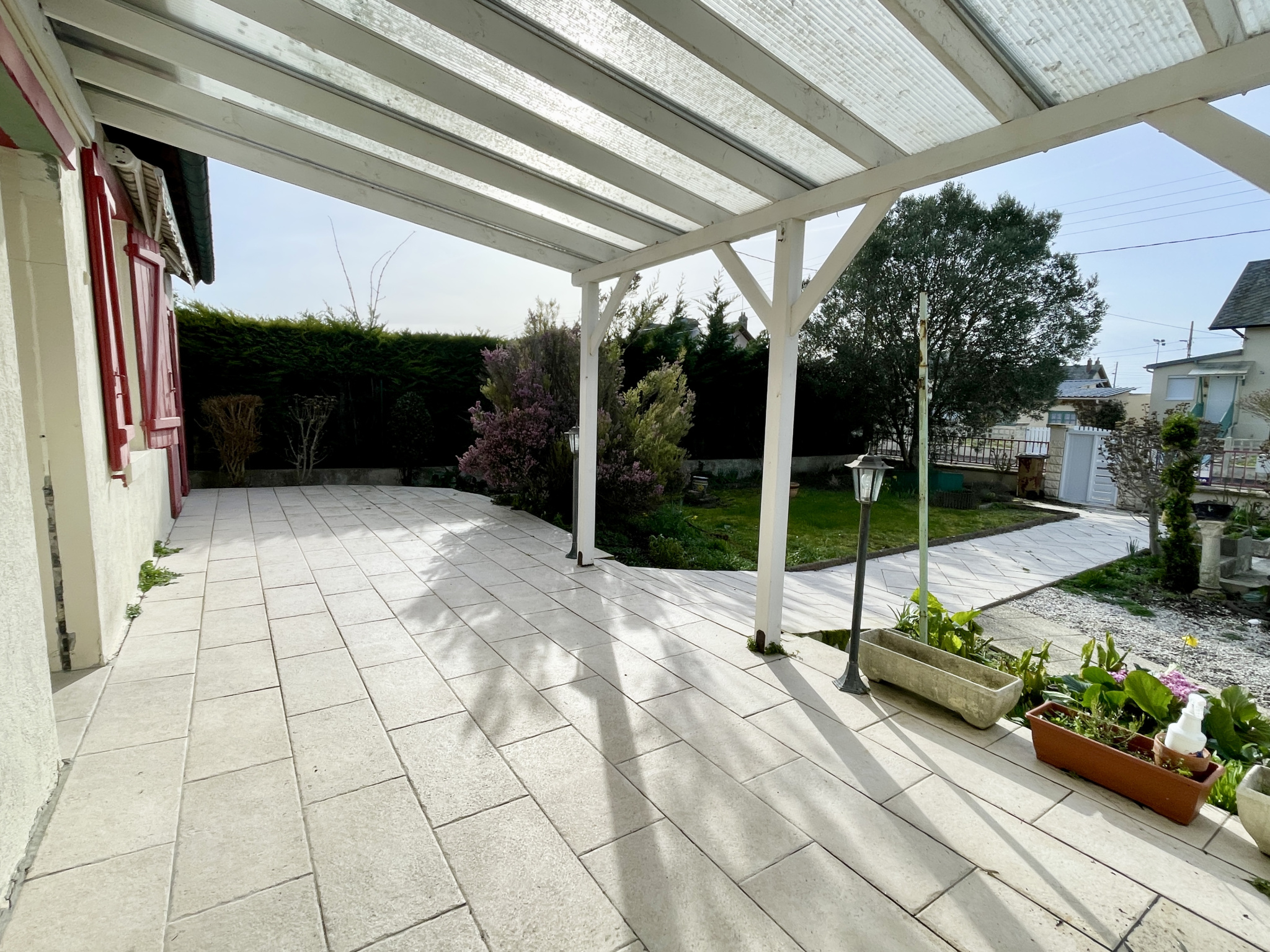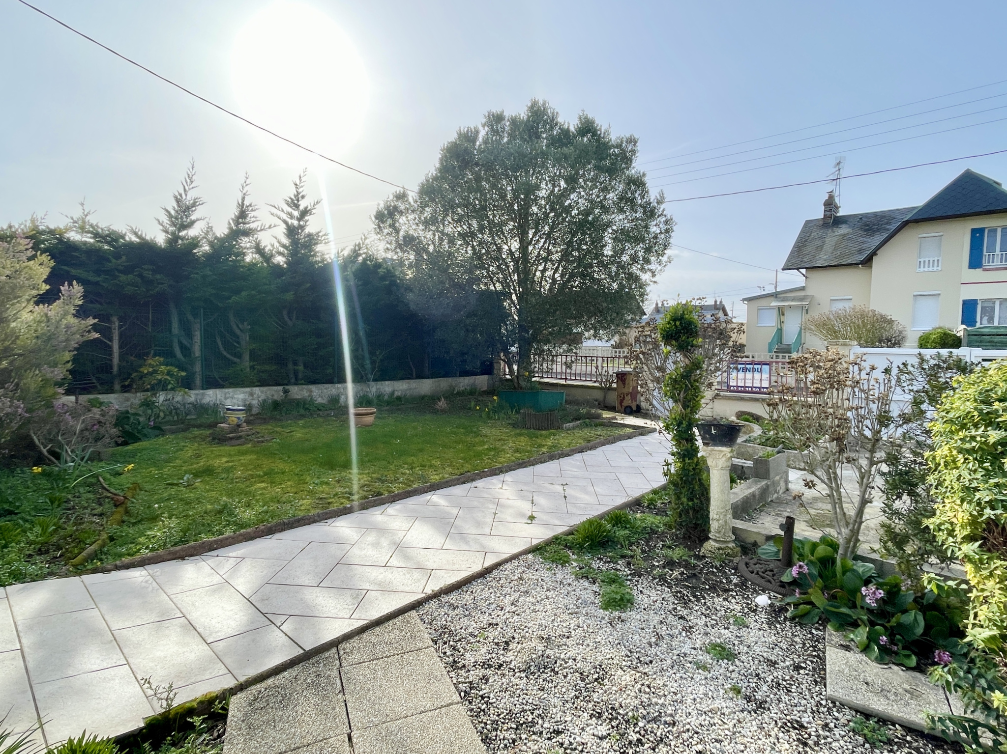 Dives-sur-Mer - Dans un quartier résidentiel à proximité des commerces : Maison traversante de plain-pied avec jardin et garage comprenant : Spacieux espace de vie de près de 45m2 ouvrant d'un côté sur une vaste terrasse ainsi que sur le jardin et de l'autre côté sur une courette, belle cuisine aménagée ouverte sur le séjour offrant également un accès sur la terrasse, deux chambres, salle de bains, WC séparés, garage avec porte automatique, chaufferie et douche. Accès aux combles en partie aménageables depuis le garage. Les informations sur les risques auxquels ce bien est exposé sont disponibles sur le site géorisque : www.georisques.gouv.fr