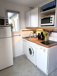 Charmant cottage avec terrasse et jardinet comprenant : Au niveau bas, séjour avec coin cuisine entièrement équipé, salle de bains, WC. A l'étage, vaste palier (possibilité de placard), chambre. Dans les combles : 2ème chambre aménagée. Terrasse, jardinet - Abri de jardin attenant à la maison. Place de parking privative. Résidence avec piscine et gardien. Faibles charges. Situation à proximité immédiate du port et de la passerelle menant à la plage de Cabourg. Idéal résidence secondaire. Les informations sur les risques auxquels ce bien est exposé sont disponibles sur le site georisques : www.georisques.gouv.fr
